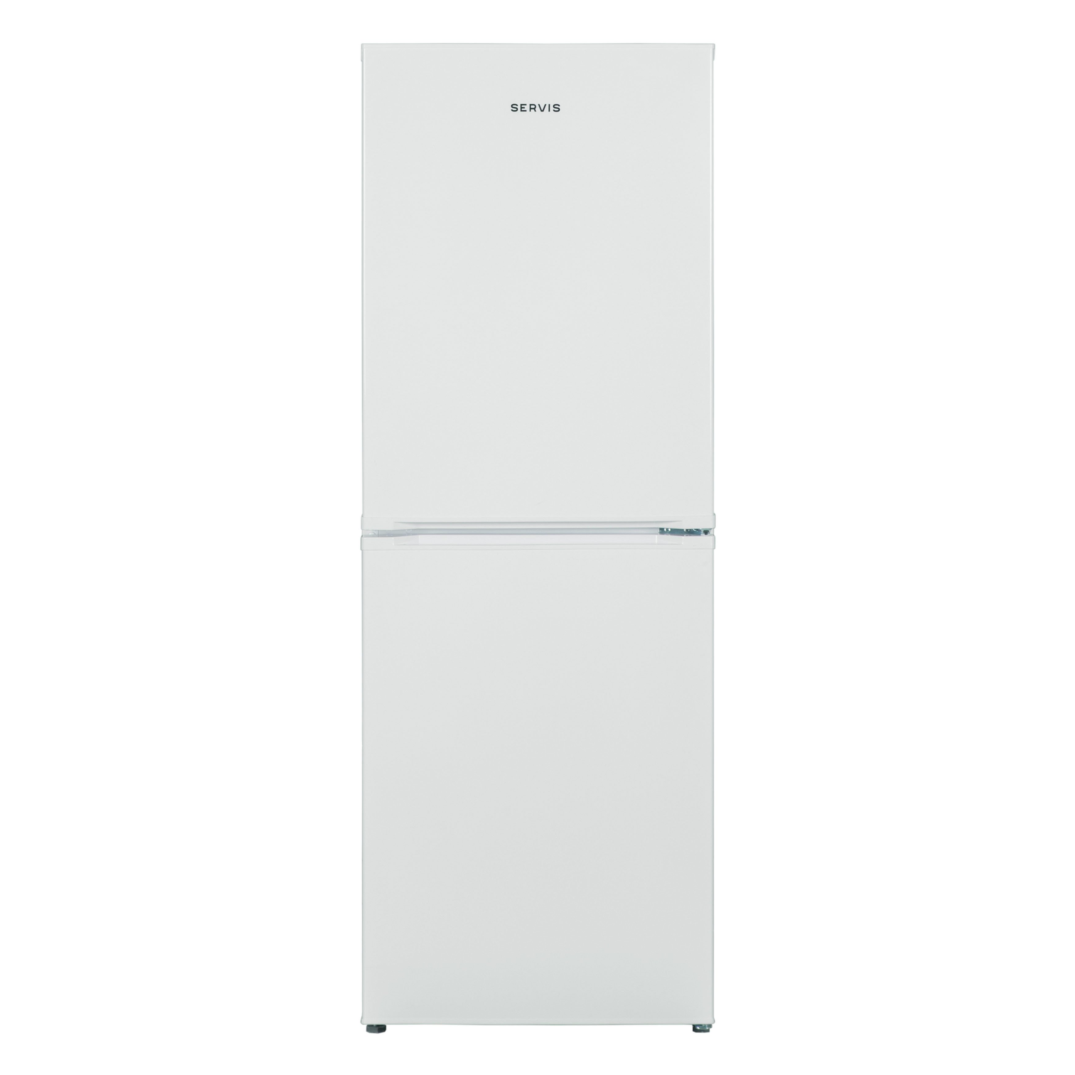 Servis BCS152W Fridge Freezer in a classic white design. 1 year parts and labour warranty. Glass shelves. Internal LED light. Overview: Size H152, W54, D61cm. Net fresh food storage volume 124 litres. Net frozen food storage volume 68 litres. Reversible door. Performance: Energy efficiency rating: A+. Operating temperature 16 to 38C. Star rating: 4. Fridge specifications: 3 shelves (glass). 2 salad crisper compartments. General information: Freezer at bottom.